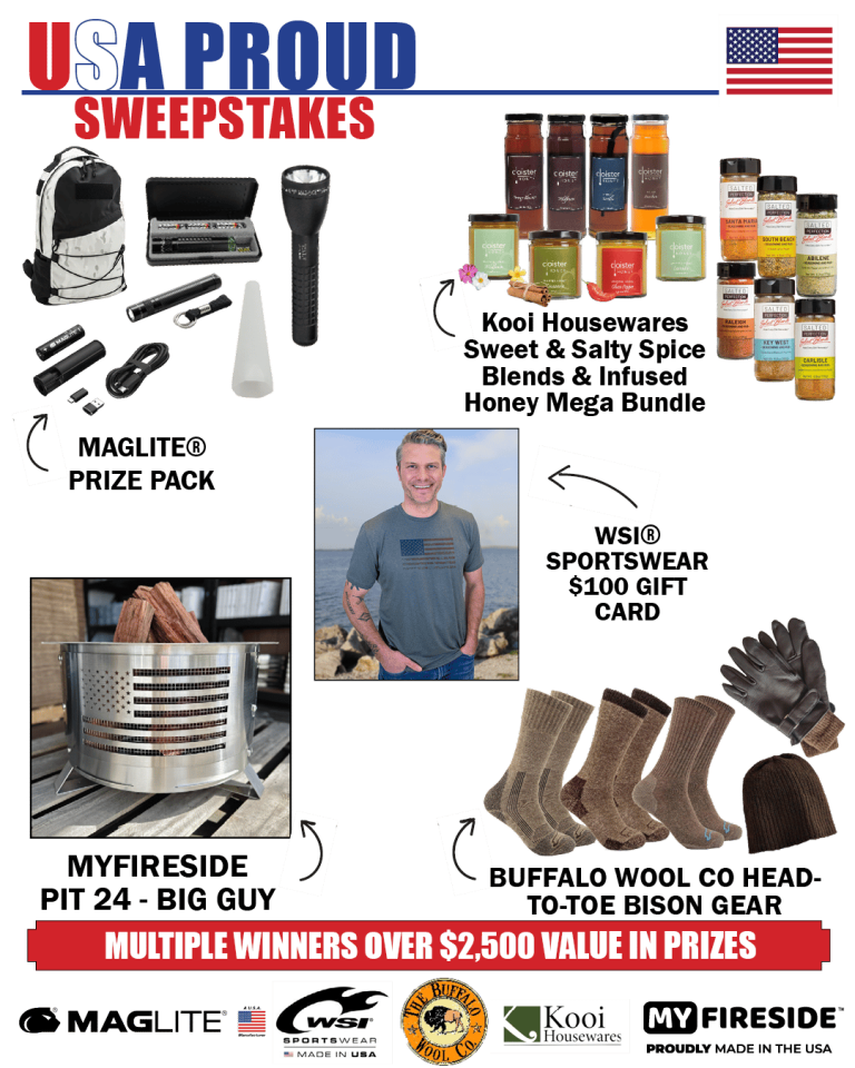 Are you feeling lucky? The USA Proud Sweepstakes is offering an amazing grand prize bundle that includes everything from patriotic decorative panels to high-quality outdoor gear. With prizes like a MYFIRESIDE PIT 24 – BIG GUY bundle, MAGLITE® Bundle, WSI®…